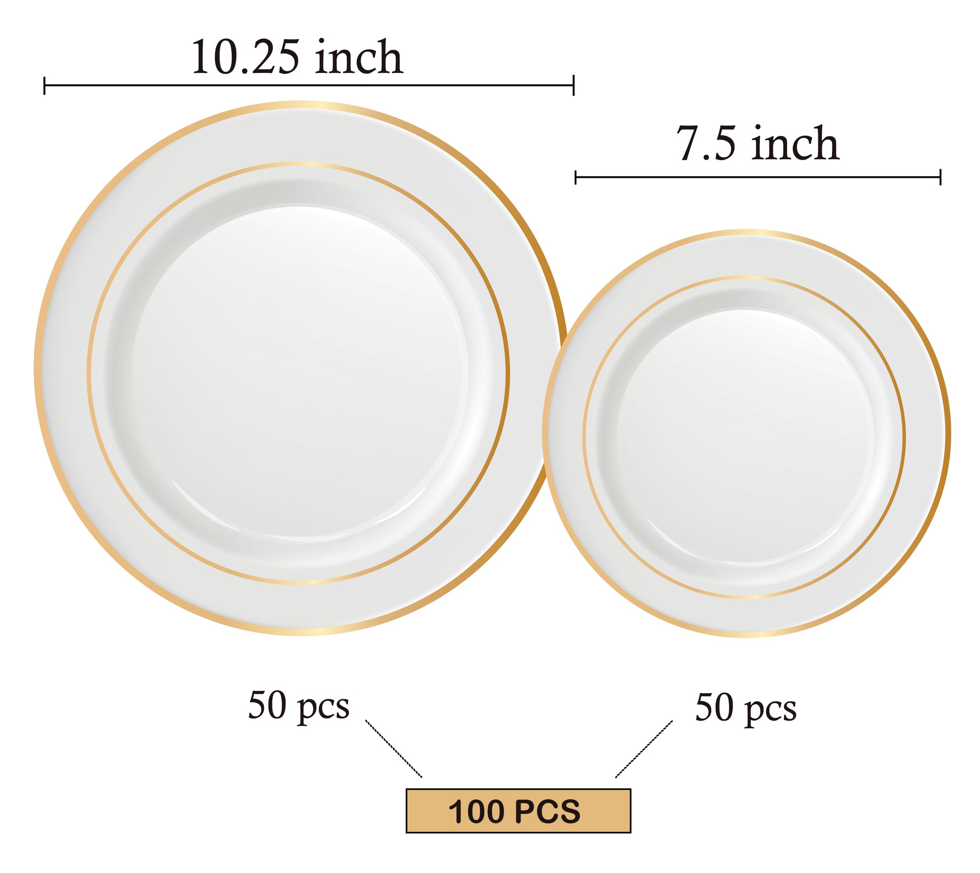 - Convenient 100-Pc Plates Set: The plastic dinnerware set arrives in a large bulk of 100 pieces, including 50 plastic dinner plates (10.25-inch) and 50 dessert/appetizer plates (7.5-inch), ready to serve up to 50 guests!